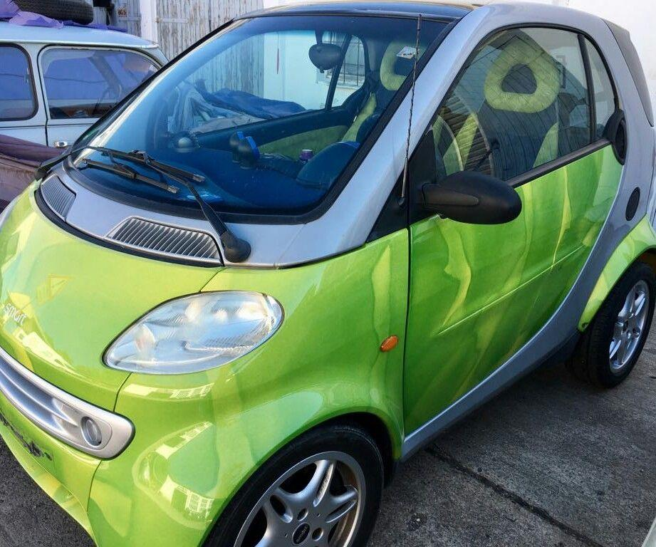 Der Smart ist angemeldet , betriebsbereit allerdings ist es ein Cabrio und das Verdeck lässt sich nich schliessen . Am liebsten natürlich auf einem Hänger/LKW .