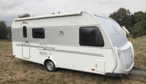 Wohnwagen ist zugelassen und kann auf Achse gezogen werden. Also einfach anhängen.