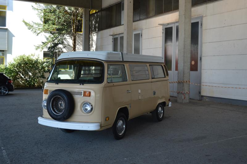 2x T2 Bus einmal mit Klappdach siehe Foto und einmal mit Normal dach. Fahrzeug laufen beide vermtl nicht, sind aber Rollbar, Originalfoto.