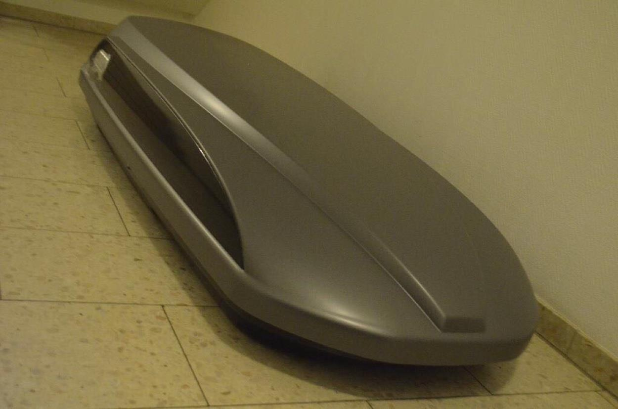 Dachbox ist aus Kunstoff und sollte durch Decken geschützt werden vor Kratzern