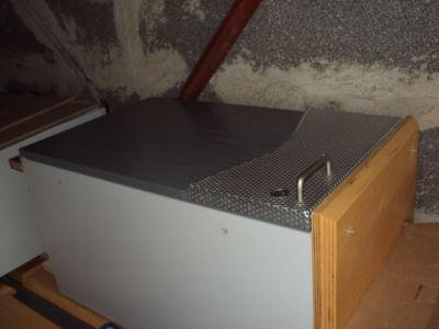 Der aktuelle Standort der Truhe ist in einem Haus in einer Kleingartensiedlung. Die Straße von der Hauptstraße dorthin (Strecke ca. 250 m) ist relativ schmal. Mit einem Sprinter kommt man problemlos hin, mit einem kleinen LKW wahrscheinlich auch.