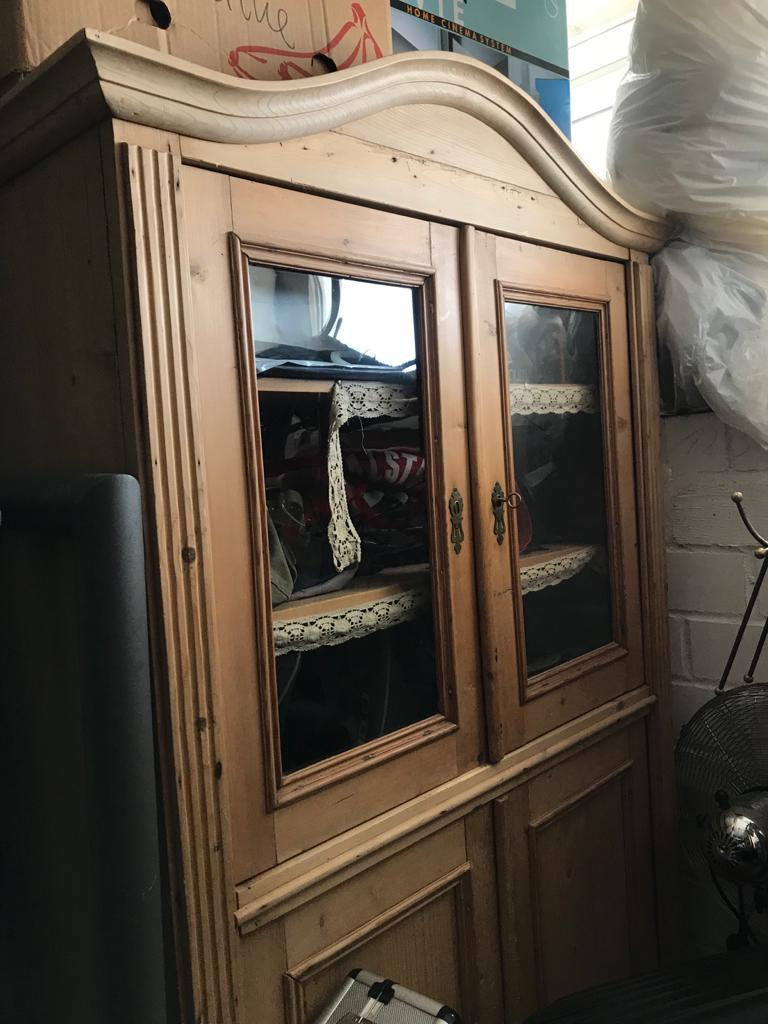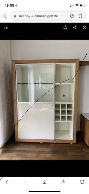 Kommode enthält Glastüren, besteht aus 2 Teilen, Gewicht vom Verkäufer geschätzt, m.E. jedoch geringer
