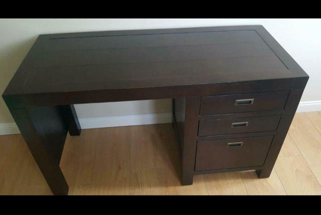 Ein zerlegter Schreibtisch. Ein Schrank.