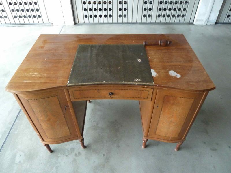 Der Schreibtisch ist in L-Form und ist in zwei Teile zerlegbar. Zum tragen werden zwei Personen benötigt. Weiterhin muss der Schreibtisch mit größter Sorgfalt behandelt werden.