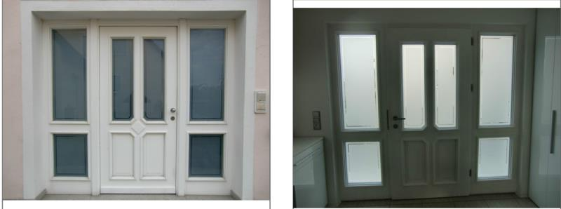 Diese Haustür kann mittig ausgehängt werden, die Seitenteile sind fest.