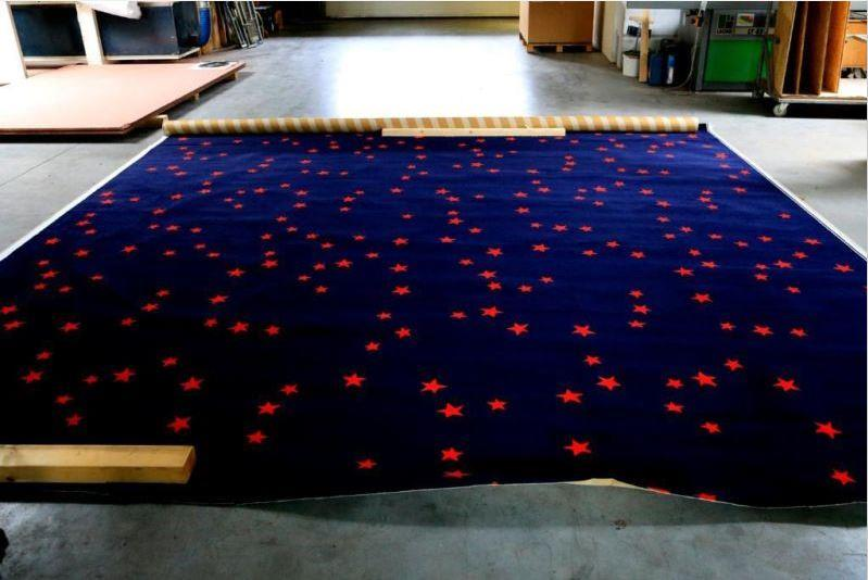 Der Teppich ist 400cm breit und durch das Aufrollen ca. 20cm im Durchmesser.