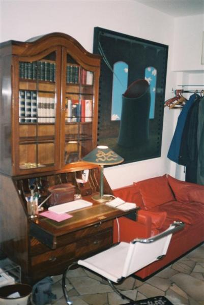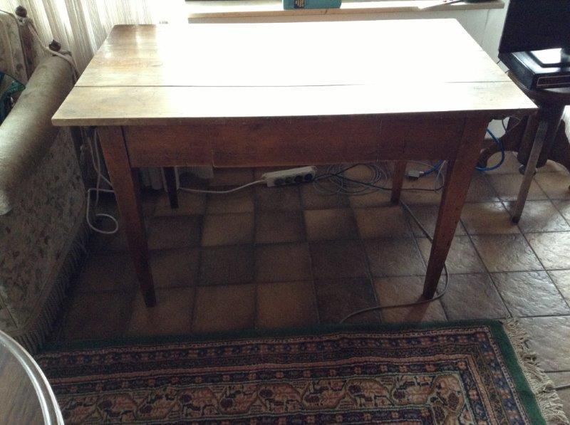 Ein massiver Holzesstisch und der auf dem Foto abgebildete Sekretär ohne Inhalt