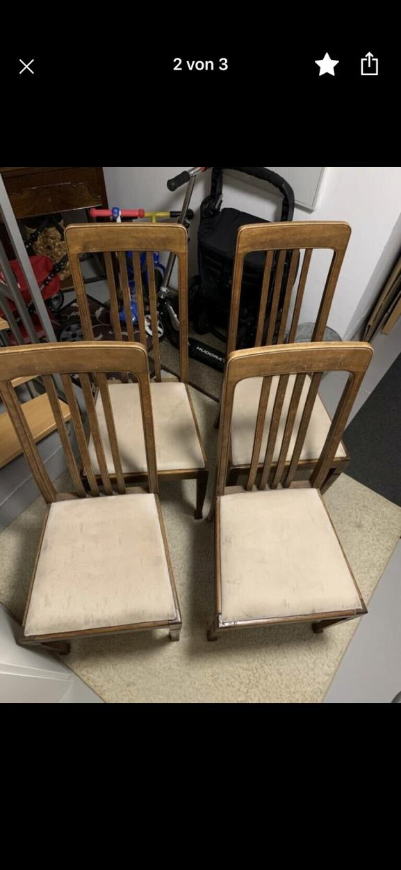Die Stühle sind Lederbezogen uns empfindlich. Bitte vorsichtig behandeln und gut mit Umzugsdecken verpacken.