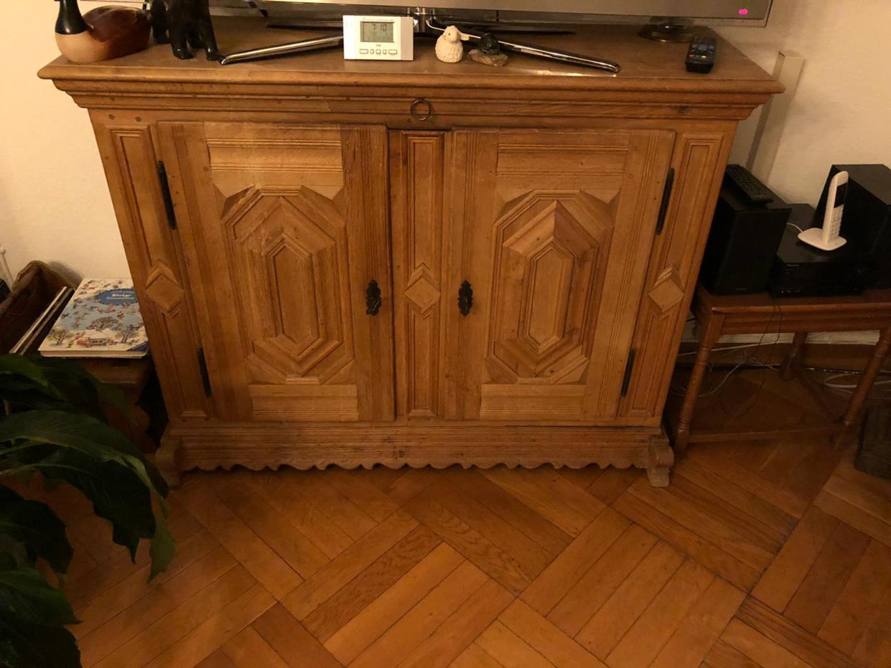 Es handelt sich um 5 Objekte: 4 zum Teil antike Schränke und Kommoden und einen Heimtrainer. Transport von Abholung im 1. OG bis zur Anlieferung in den 5. OG (beides ohne Fahrstuhl). Das Gewicht der Objekte ist lediglich geschätzt. Bitte auf jeden Fall vor Abholung und Lieferung anrufen.
