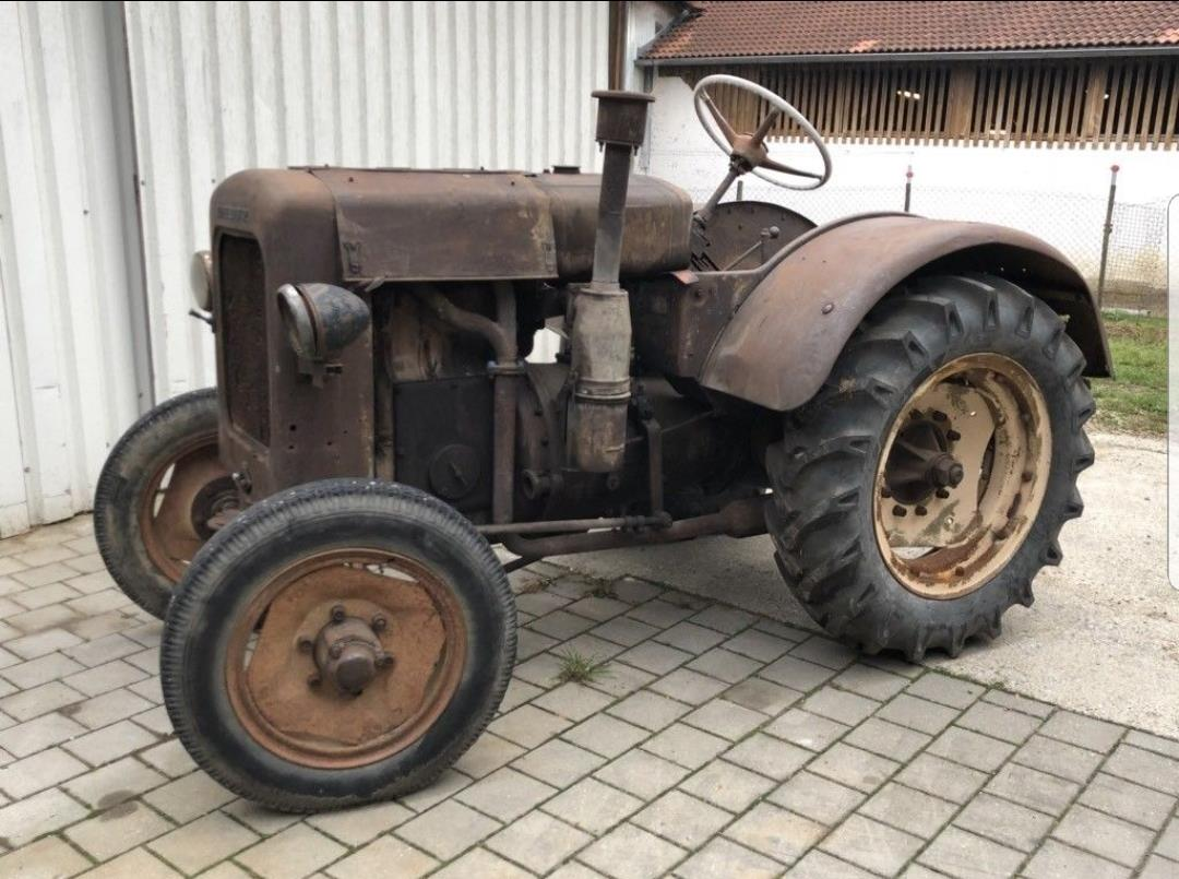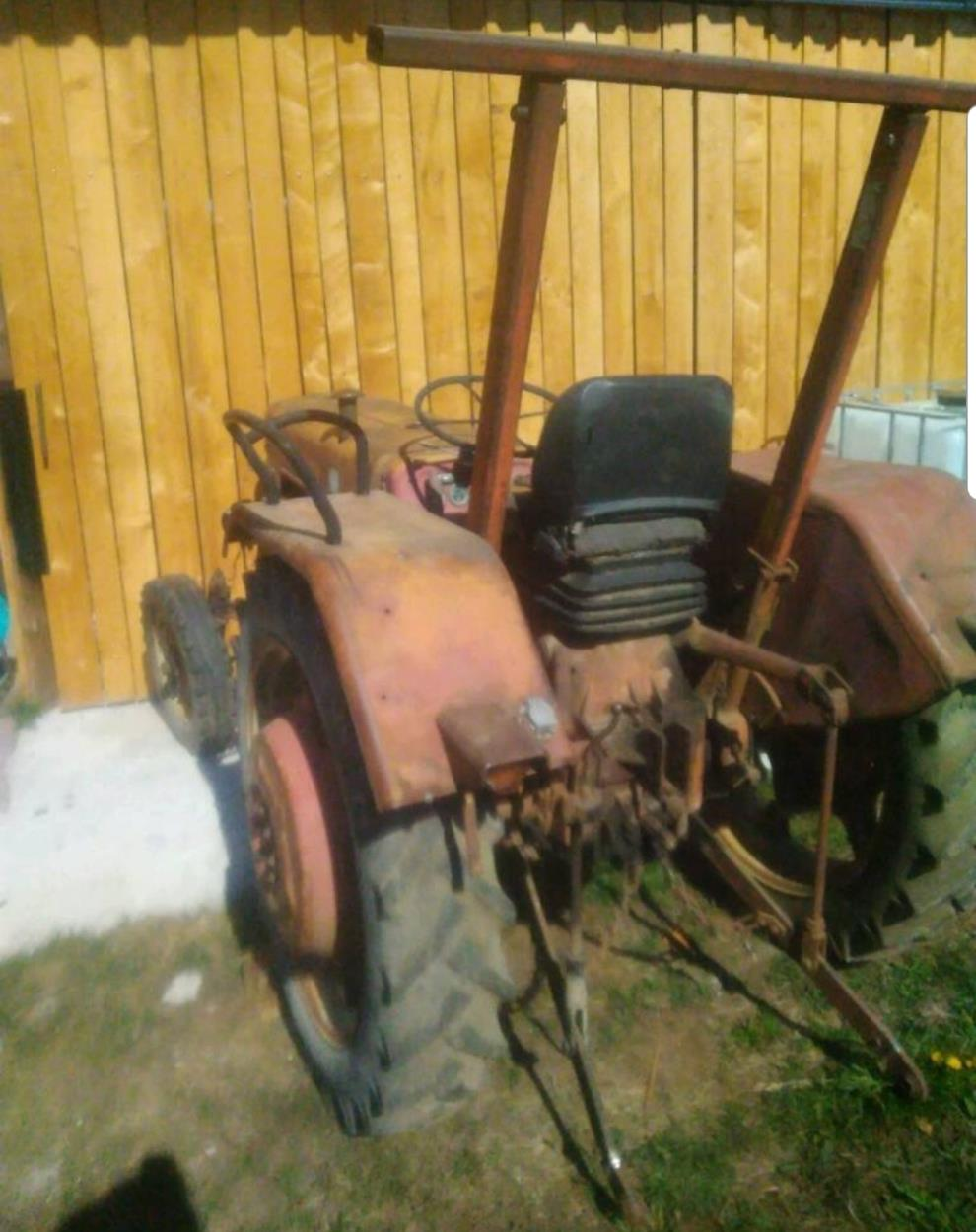 Der Traktor müsste mit Frontlader,Schaufel und Gabel transportiert werden.