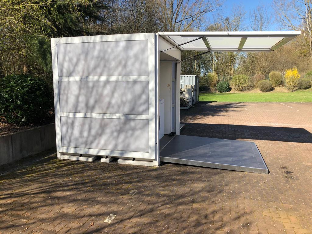 Container kann mit eigenem Stapler oder Kran verladen werden . Ösen sind auf dem Dach vorhanden