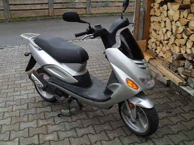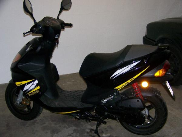 Der Roller ist nicht verpackt. Die Batterie ist abgeklemmt, daher kann er momentan nur gerollt, nicht gefahren werden.