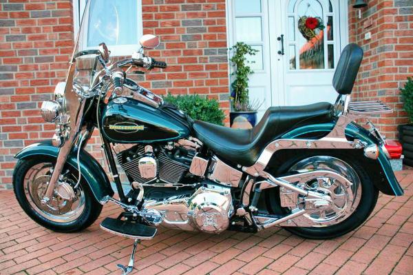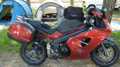 Fahrzeug hat Koffer und Tankrucksack