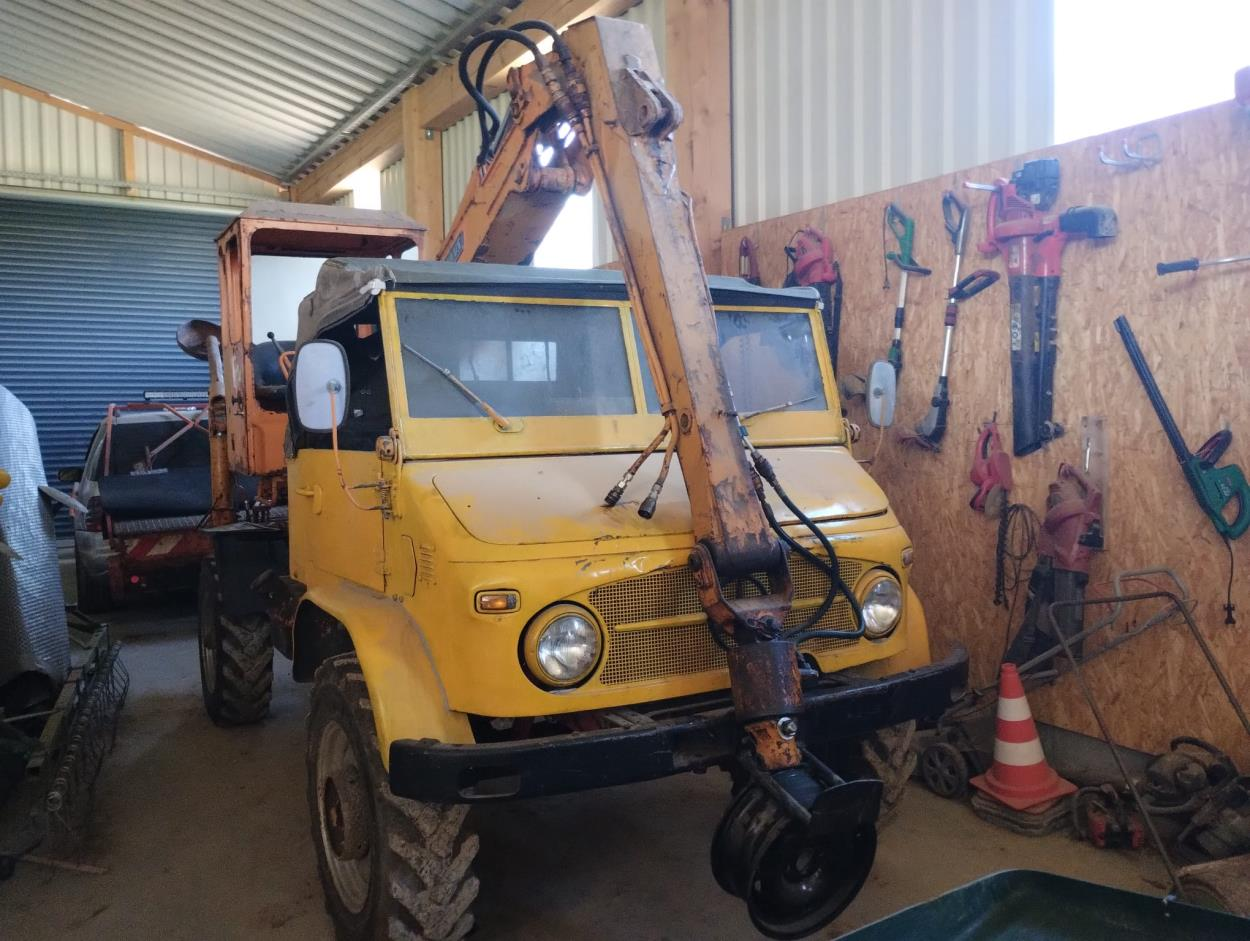 Da die Mähwerke abmontiert sind, ist er jetzt also etwas weniger breit.