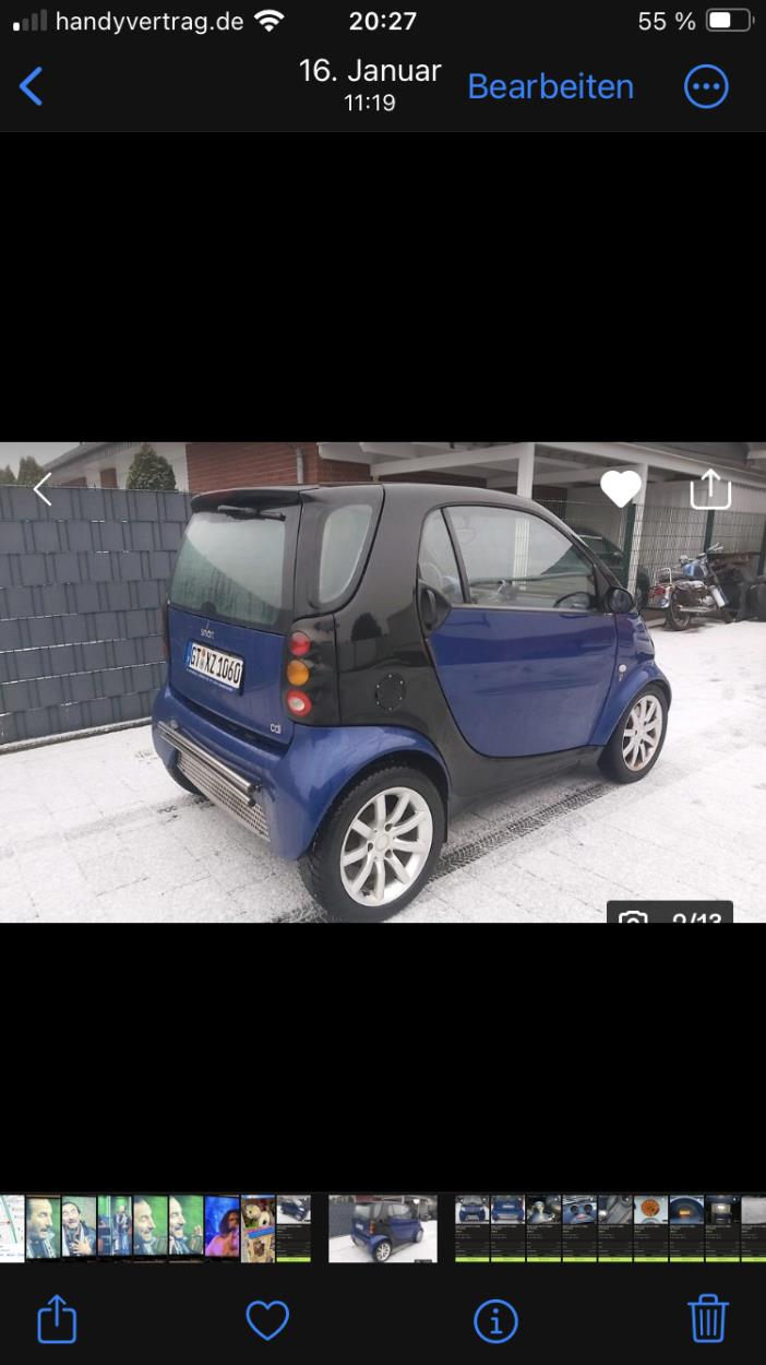 Smart ForTwo mit defekter Benzinpumpe muss von Berlin nach Bochum transportiert werden - Fahrzeug steht auf der Straße, Elektrik OK - kann also geschoben bzw. gerollt werden.