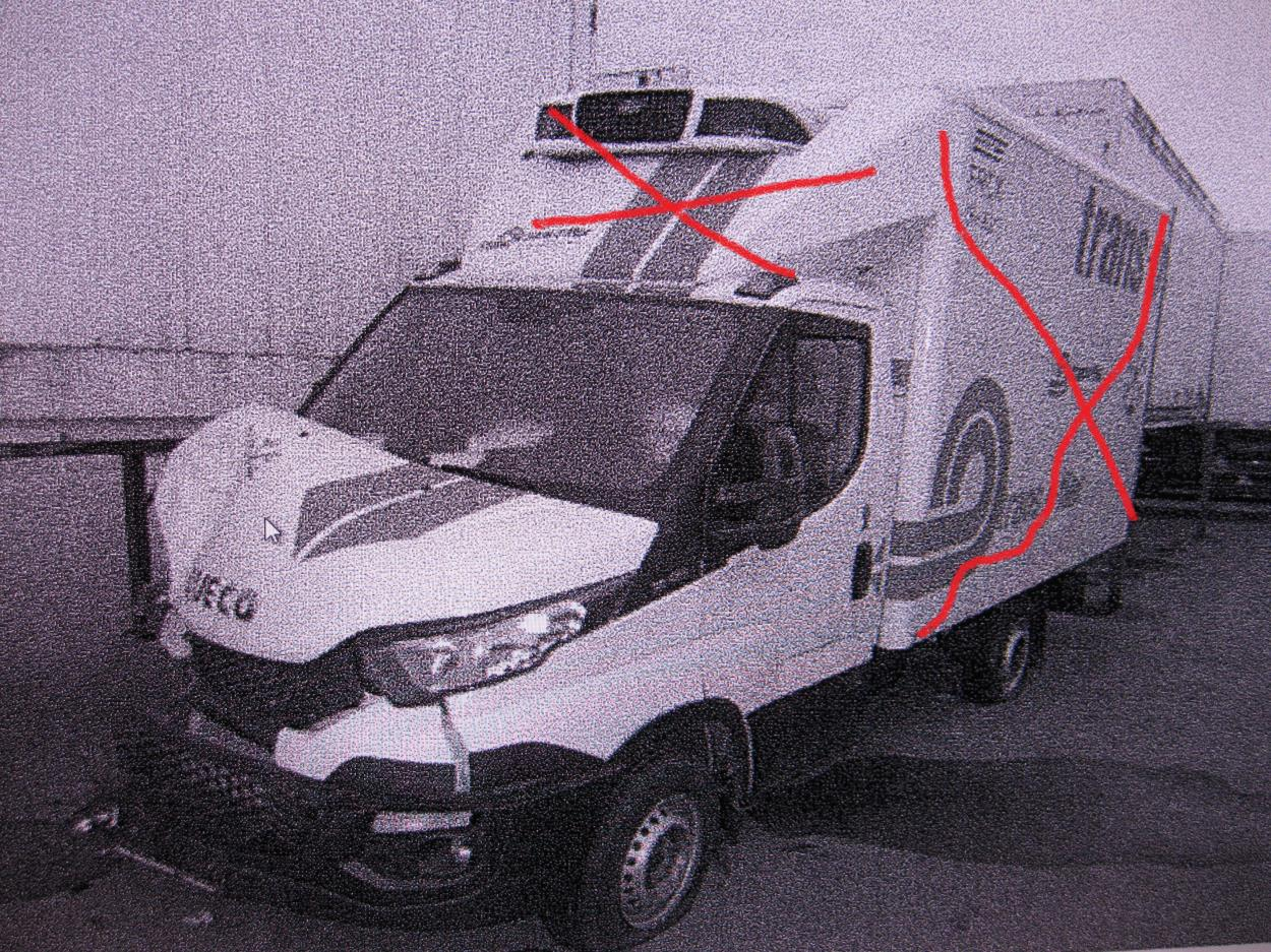 Fahrzeug ist ohne Kofferaufbau also nur das Fahrgestell mit der Kabine. Unfall.