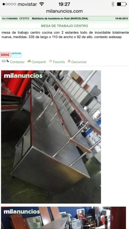 Mesa central de cocina 330 de largo 92 de Alto 110