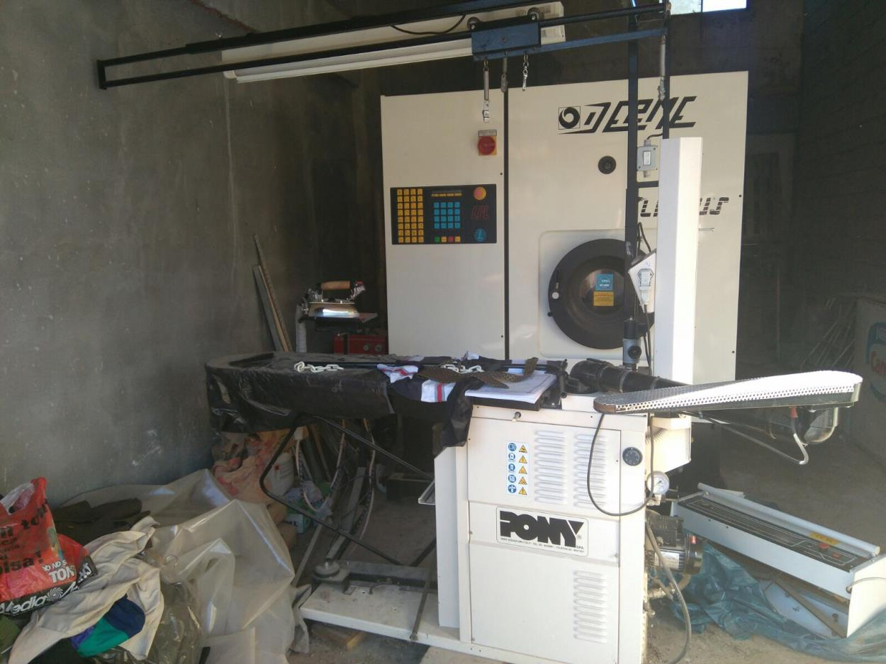 una lavadora de tintoreria y una mesa de plancha