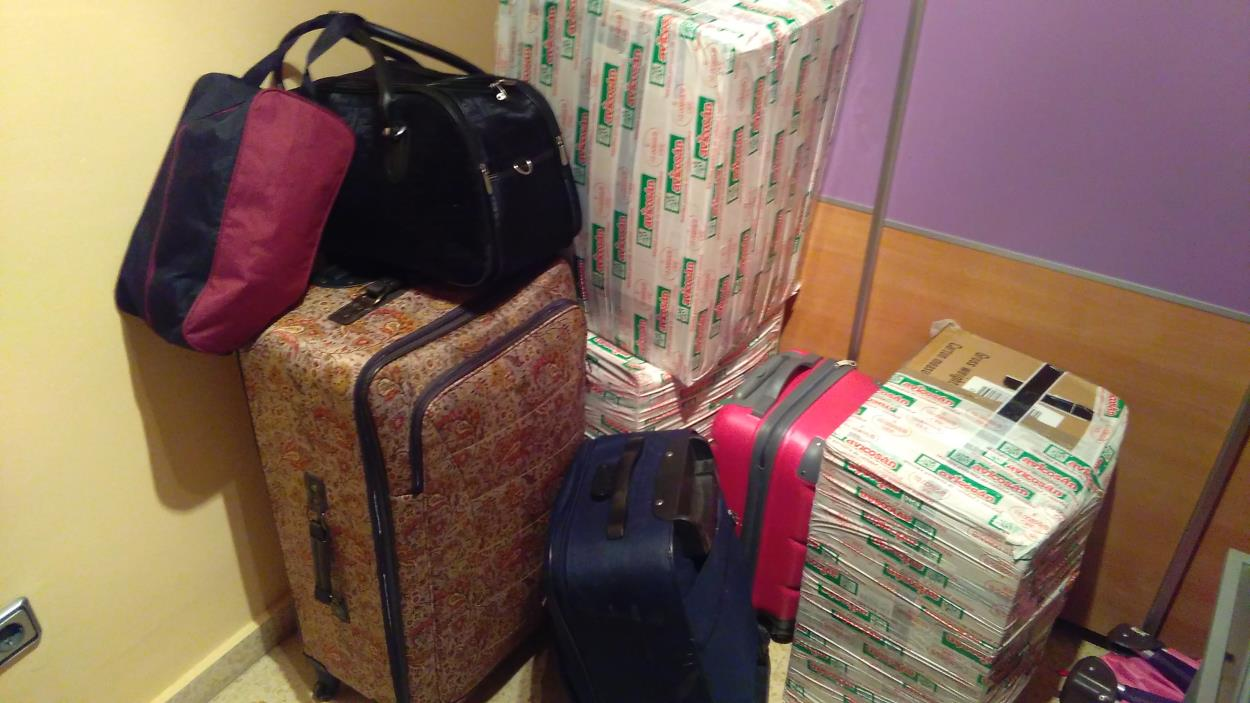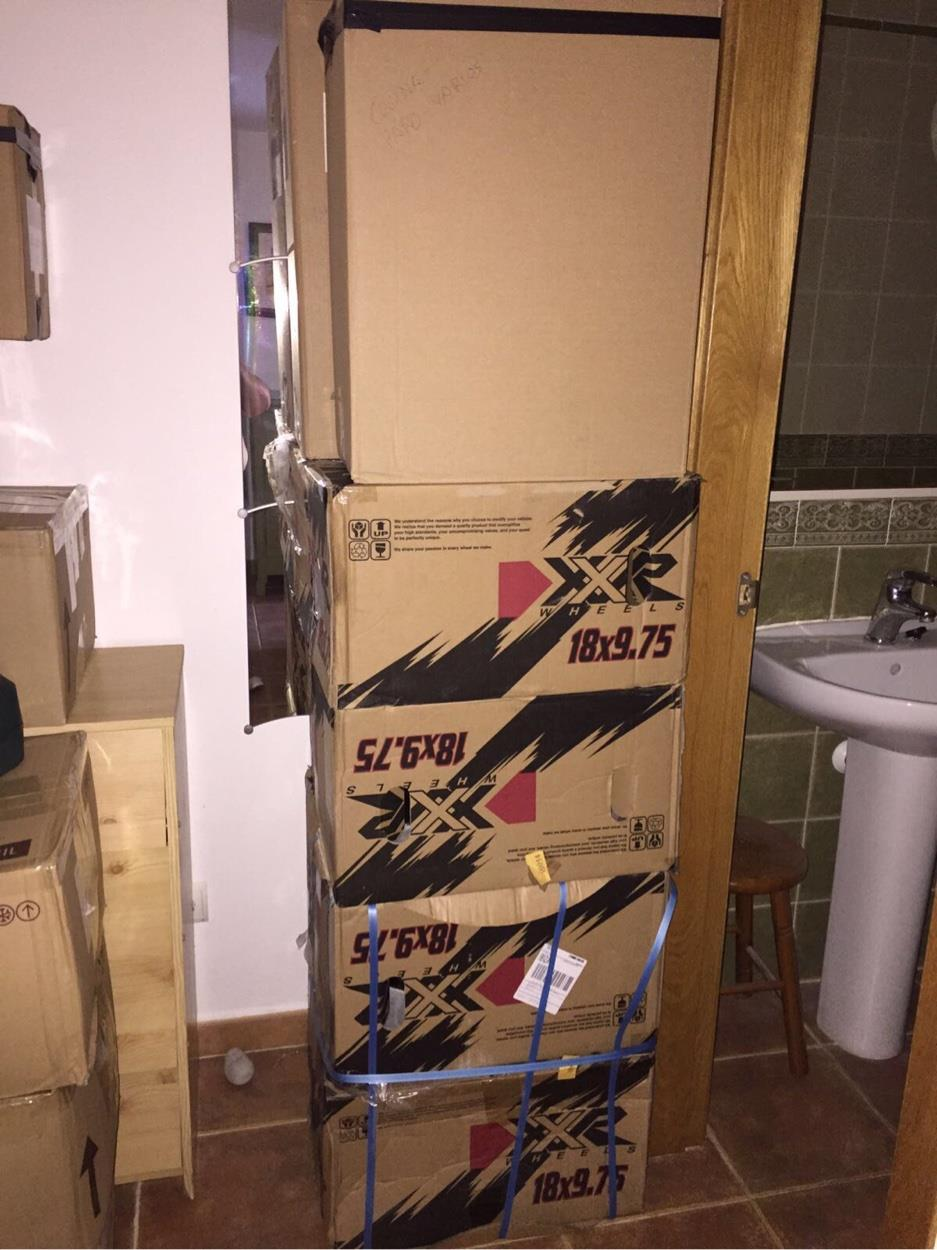La mudanza consistiría en una serie de cajas y una televisión. Menos la tele todo va en cajas.
