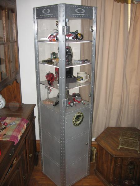 VITRINA DE MADERA CON ESTANTES Y PUERTAS DE CRISTAL.