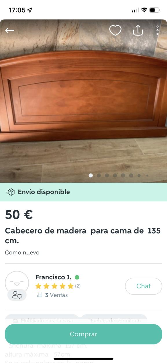 Un sofá 2x1m. Dos mesillas .6x.6x0,5m. Un colchón de 1,35m. Un canapé de 1,35 m. Un cabecero de cama de 1,35m. Un sinfonier de 1x0,6x0,7m. Un armario desmontado de 2x1,2x0,6m. Peso y medidas aproximadas. Mandame un mensaje si necesitas mas información