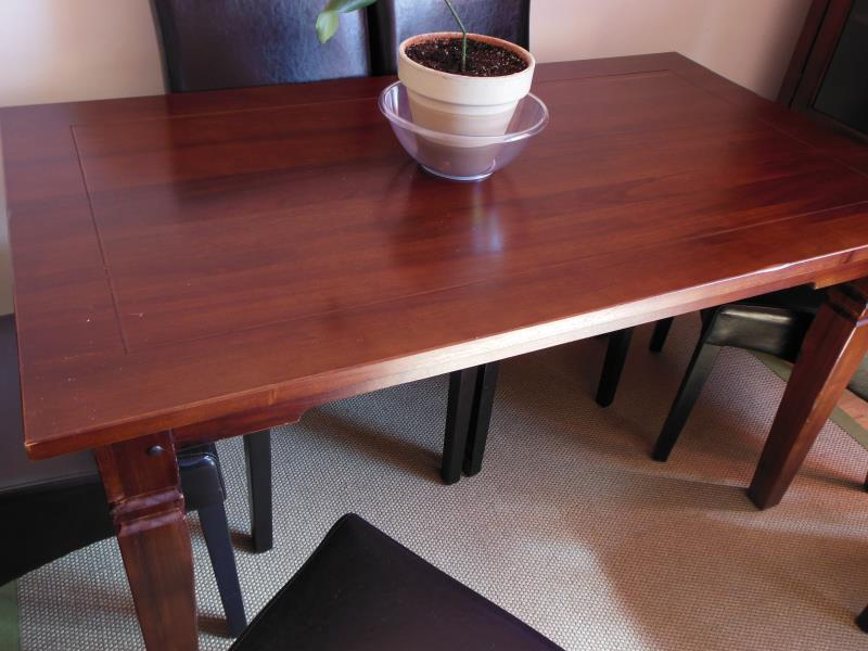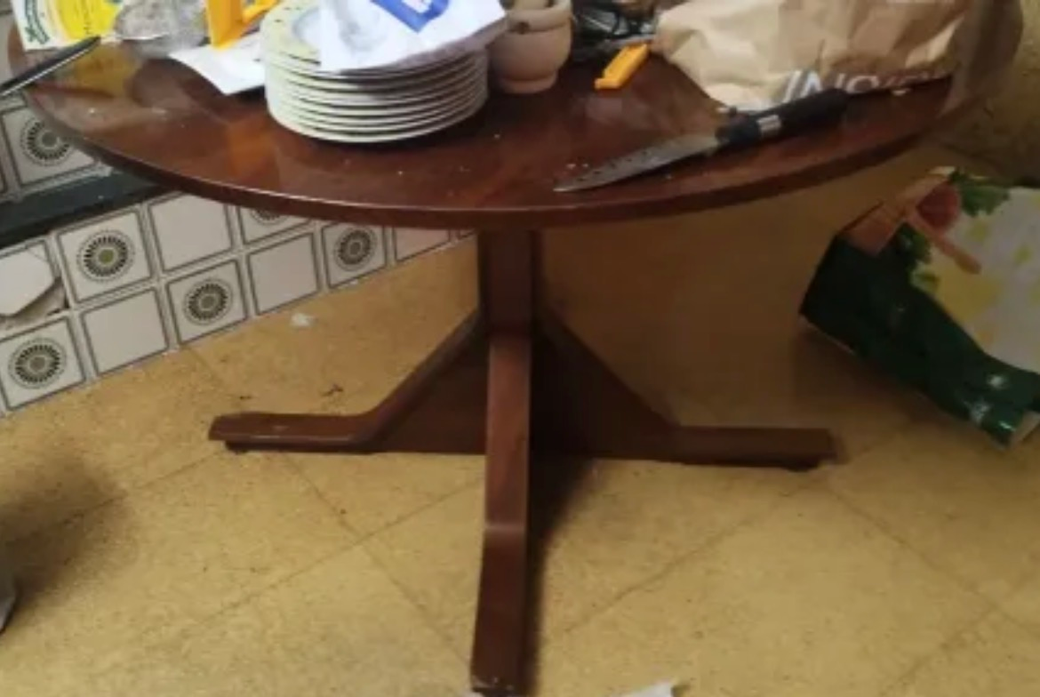 La mesa esta ya desmontada con el sobre por un lado y las patas por otro