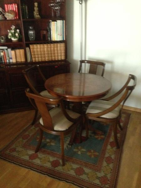 mesa de comedor de 2 x 0,80 metros aproximado, 6 sillas, y un armario de salón 3,50 x 2.20 metros aprox. y una lampara.