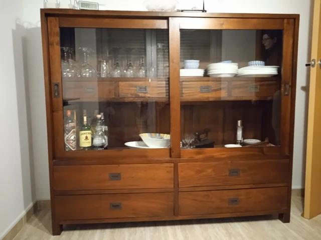 una mesa de comedor de 1,15x1,60 una vitrina de 1,80x1,50, dos aparadores de 2x50 y seis sillas. Todo madera maciza pesada. Peso y medidas aproximadas. Mandame un mensaje si necesitas mas información