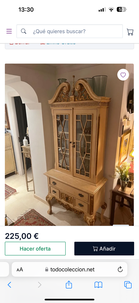 Envío frágil, hay que embalar 3 baldas de cristal a parte de la propia vitrina. Llamar para concertar fecha de entrega, pero el plazo es flexible.