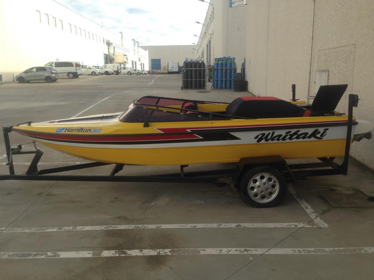 No tengo prisa ni para la recogida ni la entrega. El embarcación se encuentra sobre un remolque el cual funciona perfectamente pero no dispone de seguro. Se tiene que cargar todo sobre grua o plataforma y llevarlo desde Empuriabrava a Olot. Telf para si surge alguna duda o pregunta es [contact information removed for your privacy and protection] David.