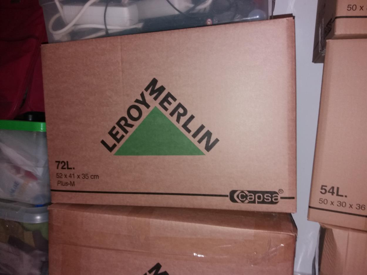 A la foto le faltan tres cajas. Dos como la de la foto de 72 litros y una que llevaría un televisor de 32 pulgadas.