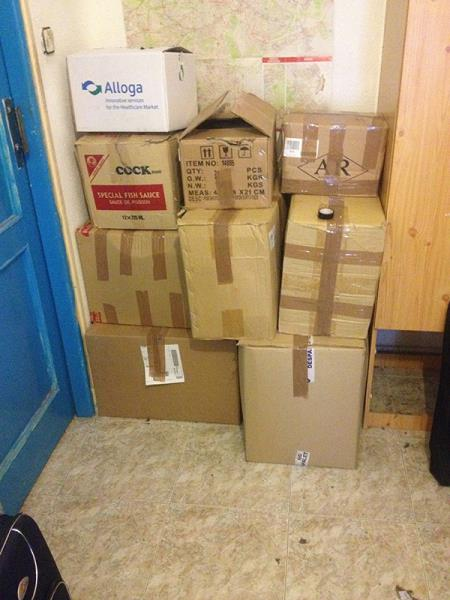 +- 15 cajas enseres(no muebles)una cuna desmontada,2 plantas de int,bicicleta montaña.