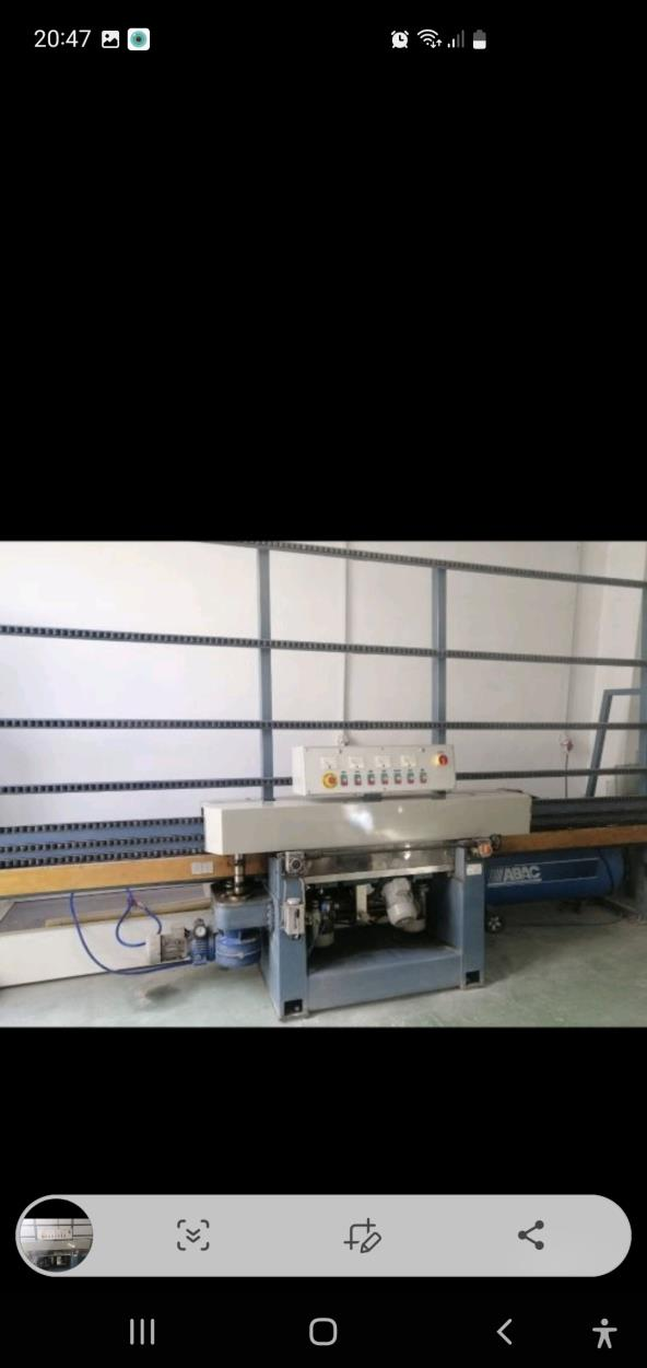 Es una máquina de pulir vidrios,estaría desmontada en varias partes,una seria en cuerpo central con los motores que es lo que más pesa y después todas las barras horizontales y las dos cintas transportadoras de los lados
