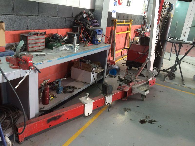 SETRATA DE UNA BANCADA DE TALLER DE CHASPISTA CON SU ELE Y ELEVADOR PORTATIL Y LAVADORA Y PIEZAS DE LA BANCADA 300K