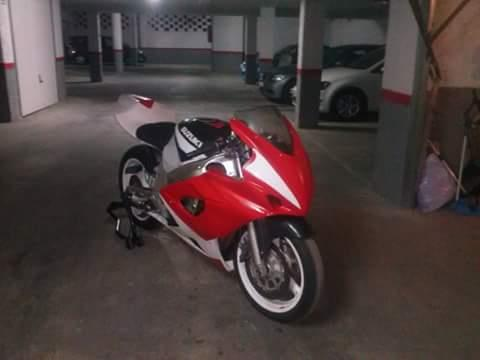 La moto se encuentra en un garaje subterráneo de fácil acceso para furgonetas o coches con remolque