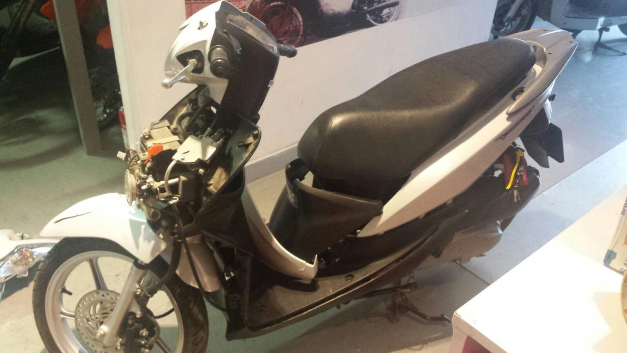 La moto es un siniestro pero puede moverse perfectamente solo tiene unos cuantos plasticos desmontados.