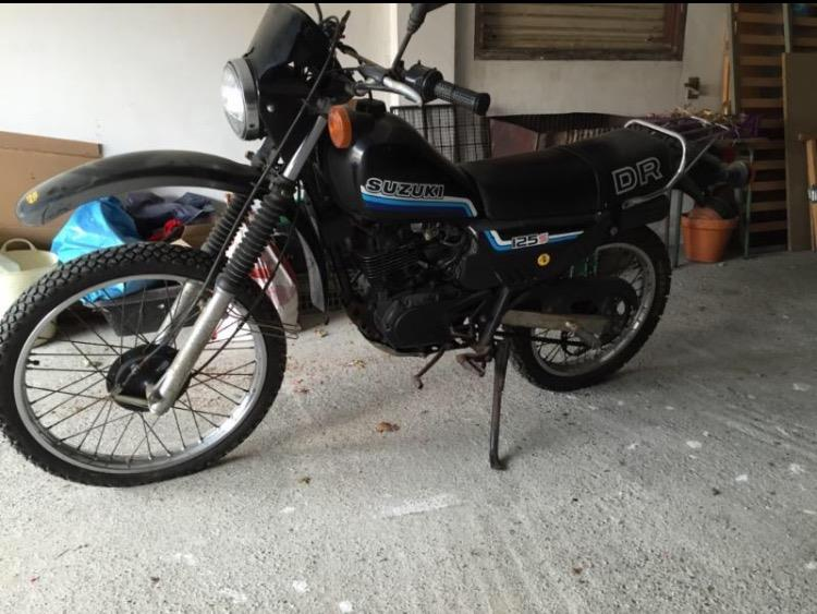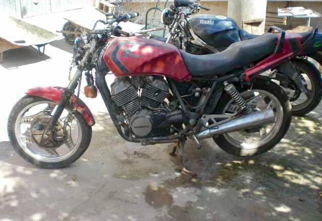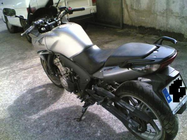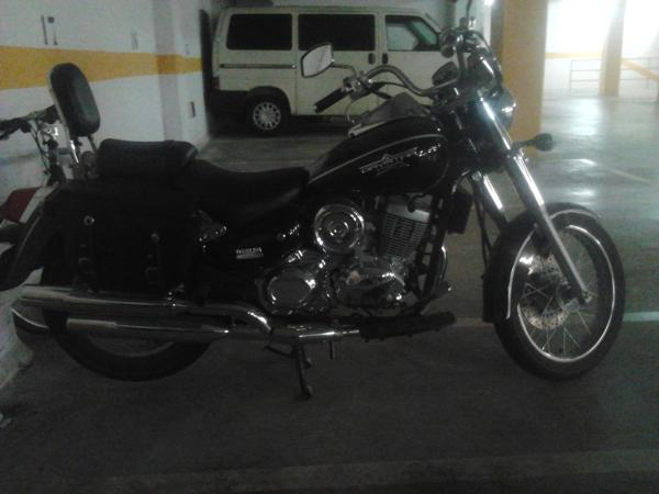 La moto tiene maletas laterales y un tubo de escape a parte.