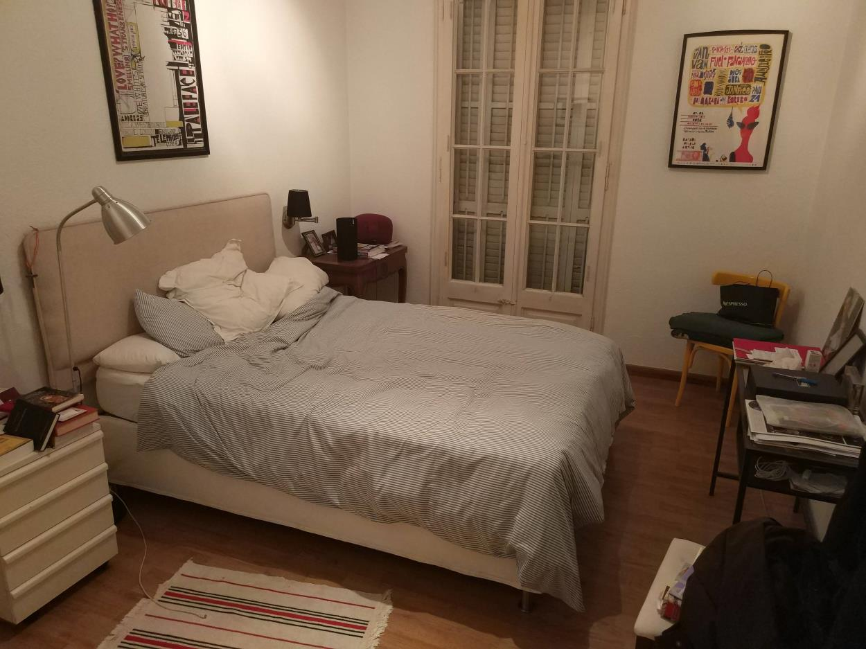 Cama 1.05m (desmontada), cama 1.50 m (somier y cabecero a desmontar), sofa de 3 asientos y sofá de 2 asientos, mesa 1.2m (superficie cristal), mesa de dibujo 80cm, 5 sillas y 2 plantas