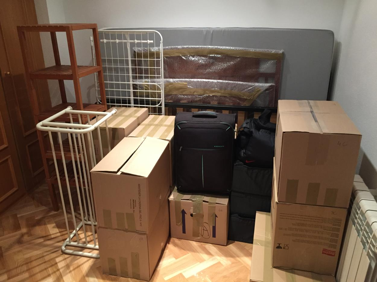 Cosas que veis en las fotos pero que no están el en inventario: 3 cajas de madera de dimensiones 30X30X50 que son ligeras, 2 colchones de 0,90 y 1,35, un tendedero y un zapatero de tubo blanco. la moto que veis en la foto (es de cilindrada 125cc). Tanto en Torrelodones como en BCN hay fácil acceso a los pisos con ascensor en ambos. En Barcelona, el edificio tiene un montacargas que va desde la calle al piso. Todo está plastificado y protegido. El sofá gris, está desmontado (son dos piezas) para que sea más fácil su traslado. Las cajas pesan de media unos 15 kg.