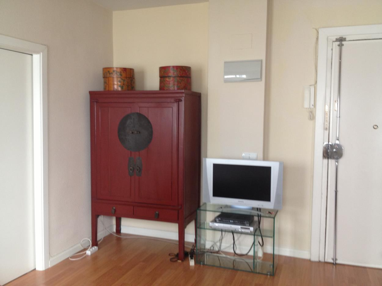 Dos camas (sin canapé). Un sofá, siete u ocho cajas. Dos televisores. Cuatro mesitas pequeñas, dos estanterías/armarios pequeños, una mesa terraza con cuatro sillas. 3 sillas cocina, varios objetos de hogar (aspiradora, plancha, cubo basura etc...)