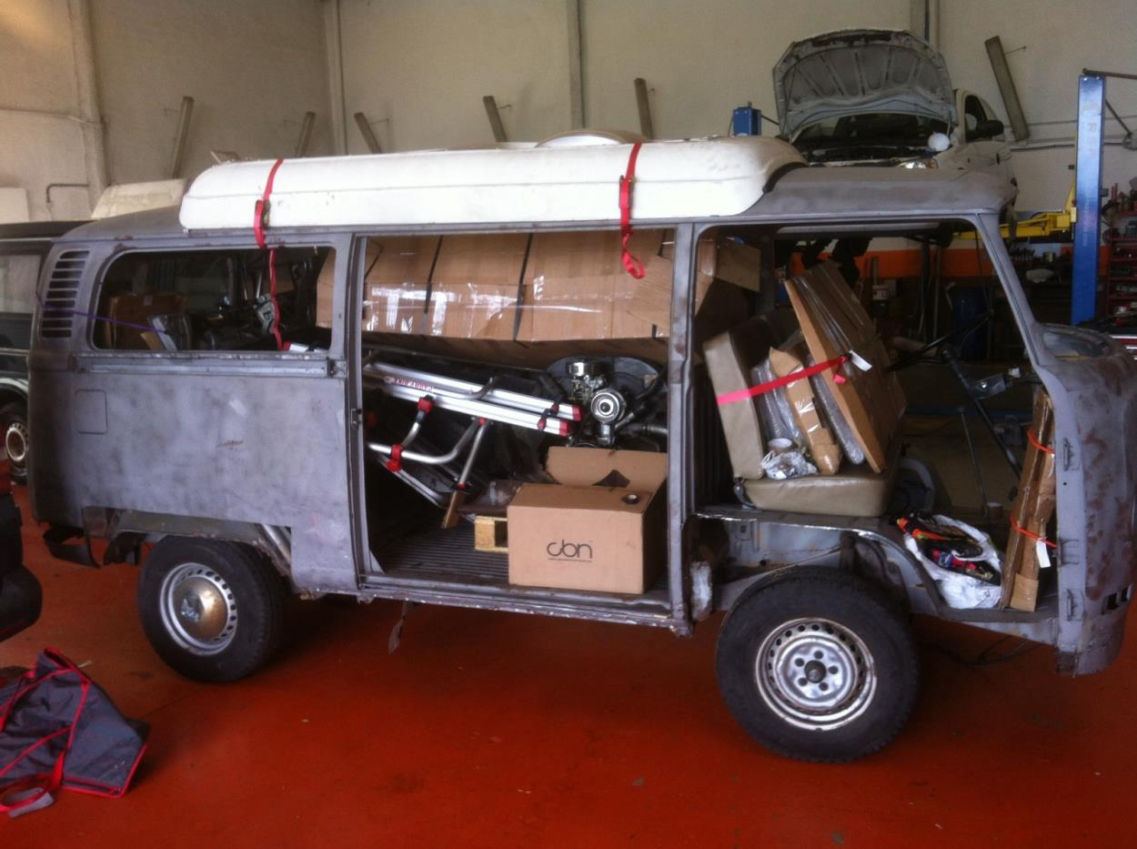 Hola cabe en furgonetas de 1,40 cm de ancho de paso de rueda, con dos travesaños de andamio sube bien, pesa poco ya que el motor va a parte en una caja, igual que puertas, capos, etc...[Remoción de URL del sitio de web]