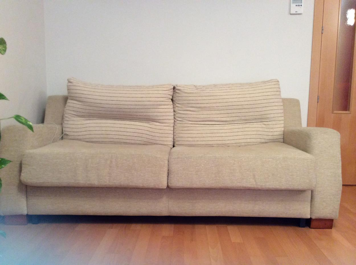 Cama de 1,35: solo el colchón, la base tapizada del somier (sin las patas) y un cabezero pequeño