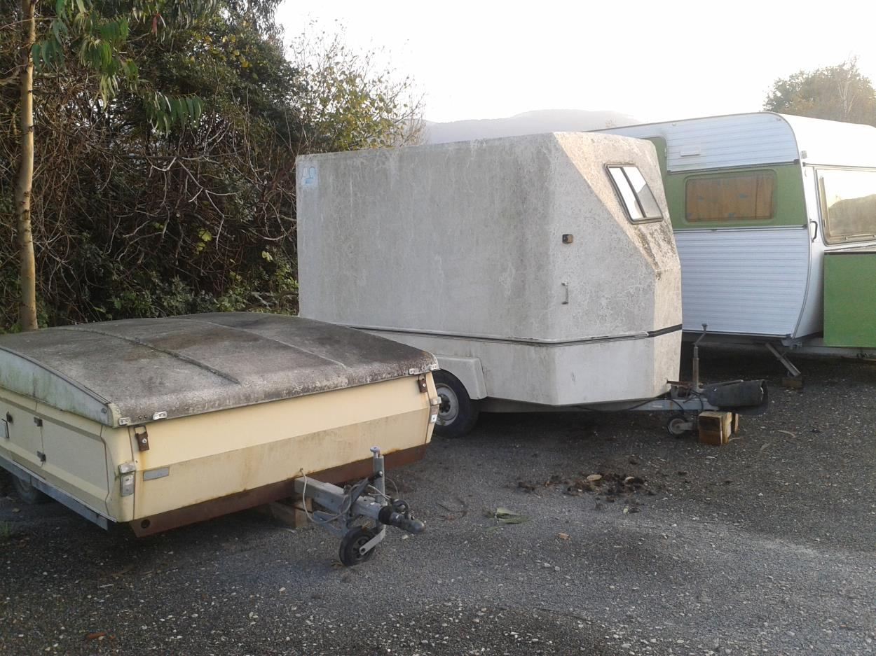 Es el remolque que aparece en el centro en la foto, no tiene documentacion y rueda bien pero no para circular por tener mal un rodamiento y algun neumatico,no tengo prisa por realizar el transporte, busco precio barato.