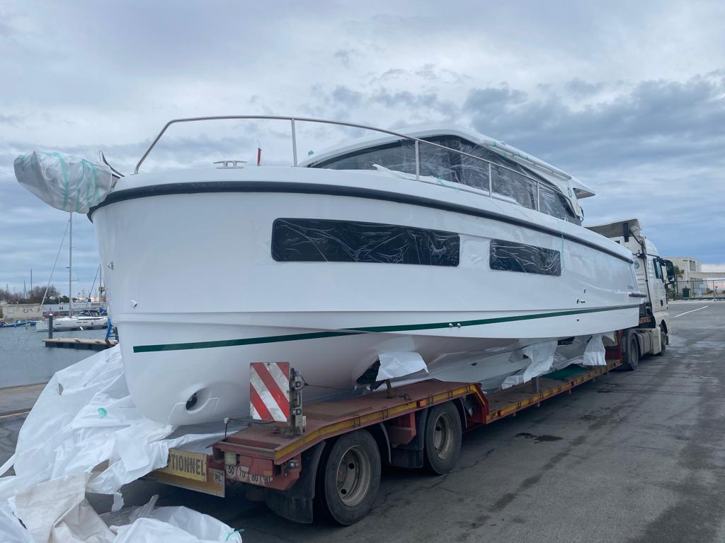 Impératif : il faut une remorque à bateau à rouleaux pour le sortir de l'eau au point de chargement et le mettre à l'eau à son point d'arrivée via les descentes de mise à l'eau dans les ports. Je serai bien entendu présent lors du chargement et du déchargement pour aider à la sortie d'eau et la remise à l'eau.
