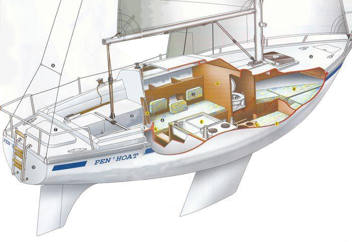 Voilier biquille et aileron, il peut poser sur ces trois points, voir photo.