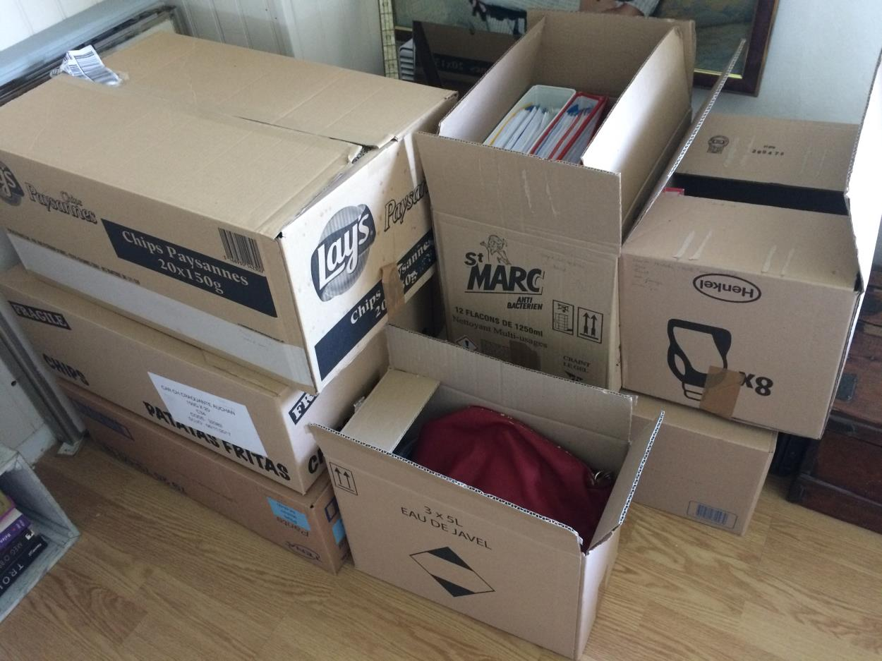 Beaucuop de cartons assez lourd et fragiles, quelques meubles de rangement