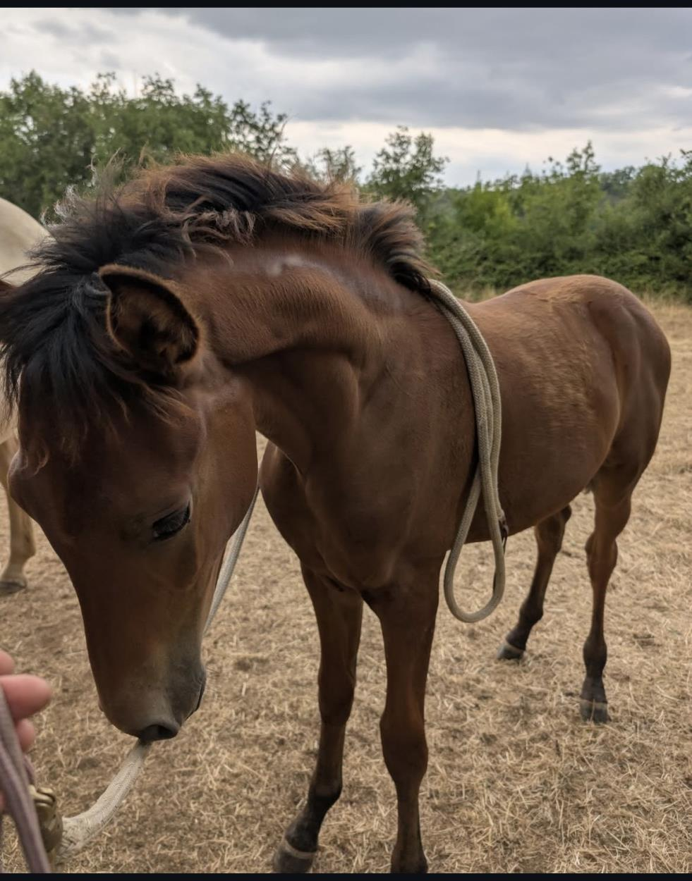 Ce cheval n'est pas habitué aux trajets de longue durée et est sensible aux coliques donc il demande une grande surveillance, de l'eau et du foin.