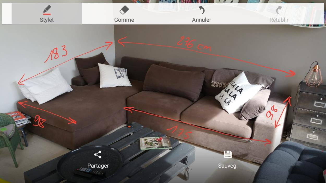 Le canapé est à récupérer au 1er étage. Il faudra donner un coup de main pour le descendre. Il se sépare en 2 parties : le canapé (192cm long x 110cm large x 90 xm de haut) une méridienne (197cm de long x 117cm large x 90cm haut).