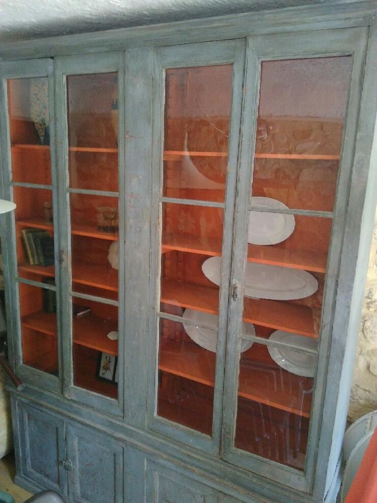 Meuble ancien Bois Peint - NE DOIT PAS PRENDRE L'EAU ! Meuble deux corps dissociables - Haut Portes vitrees non demontables - (photo) - MAGASIN FERME les LUNDI & MARDI -