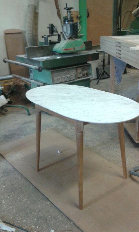 260 cm Buffet with white marble top, Stand Buffet with whitel marble top, Oval table with 2 extensions and 6 chairs